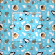 Adorable winter blue fabric with a pattern of cute Inuit Alaskan chirldren, penguins, mittens and fir trees