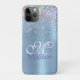 Cute iridescen ice blue faux glitter monogram Case-Mate iPhone case