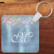 Cute iridescen ice blue faux glitter monogram key ring