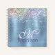 Make back to school fun with this Cute personalised Notebook. It is designed with elegant girly iridescent silver ice blue faux glitter .