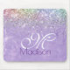 Cute iridescen lilac purple faux glitter monogram mouse mat
