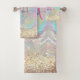 Cute iridescent faux gold glitter monogram towel set. Upgrade the look of your bathroom decor with a girly, trendy and modern towel set. It makes the perfect sweet 16 birthday, wedding, bridal shower, anniversary, baby shower or bachelorette party gift for someone that loves glam luxury and chic styles. Whether for valentines day, Christmas or any occasion in general this towel set will make a great gift idea for any girl or woman who loves modern sparkly elegance. PLEASE NOTE: These are flat printed graphics - no real glitter, jewels or raised parts.