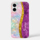 Cute iridescent fuchsia gold faux glitter monogram Case-Mate iPhone case