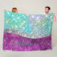 Cute iridescent purple teal faux glitter monogram fleece blanket