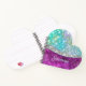 Make back to school fun with this Cute personalised Notebook. It is designed with elegant girly silver and iridescent faux glitter in unicorn, rainbow, teal, aqua, fuchsia and green colours on both sides.