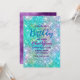 Cute iridescent unicorn blue faux glitter monogram invitation