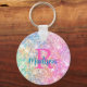 Cute iridescent unicorn pink faux glitter monogram key ring