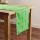 This awesome table runner features a graphic image of a cute Irish unicorn. The unicorn is bright green with a mane and tail made of two more shades of green. It has a bright gold horn and golden hooves. The unicorn has a gold ringed eye and a friendly smile. There are four small Shamrocks on the side of the unicorn.