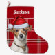 Cute Jack Russell Dog Red Plaid Personalised Large Christmas Stocking