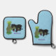 Cute jaguar black panther cat cartoon illustration oven mitt & pot holder set