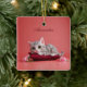 Cute January Cat with Carnations Ceramic Ornament