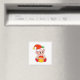 Cute jolly Christmas elf Magnet. Cute baby elf holding a gift box.