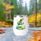 Cute watercolor style frog jumping off a lily pad. Funny frog pun. Don't worry, be hoppy.