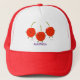 Cute jumping red cherries cartoon illustration trucker hat