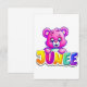 A vibrant and adorable pink bear with big eyes, holding a colourful "JUNEEE" sign. Perfect for kids' themes, birthday cards, or fun designs!