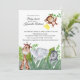 Cute watercolor jungle safari gender neutral baby shower invitation. It features safari animals in between green leaves and plants. There's a monkey hanging a vine and a bunch of bananas in top corner. Easy to personalise with your party information.