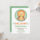 This gender neutral baby sprinkle invitation features a cute baby lion on green.