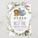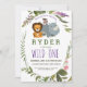 Invite friends and family to celebrate your little one's first year of life with this cute and adorable jungle safari animal birthday party invitation. This design features a lion, monkey, and a rhino surrounded by botanical leafing with pink and purple flowers. Customise the text with the font and colour of your choice or leave this popular typography for your convenience. Other colours and styles are available. Just contact us and we'd be glad to assist you in making your party perfect!