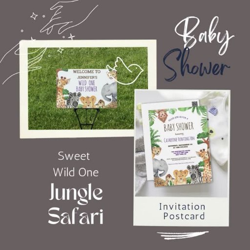 Invite friends and family to celebrate your baby shower with this sweet and charming jungle safari animal baby shower invitation. This design features cute baby animals such as an elephant, zebra, giraffe, monkey, and a lion surrounded by botanical leafing. Customise the text with the font and colour of your choice or leave this popular typography for your convenience. Other colours and styles are available. Just contact us and we'd be glad to assist you in making your party perfect!