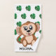 This cute monkey is sitting and waiting to play. Behind him is a white background with a jungle leaves pattern. Underneath him is the name of your child, who is playing in the rainforest with him. Add a cute buddy to your child's bath time!