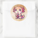 Cute Kawaii Axolotl with Bubble Tea Classic Round Sticker