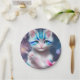 Cute Kawaii baby striped pink and blue cat kitten Paper Plate