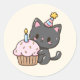 Cute Kawaii Black Cat Birthday Party Classic Round Sticker