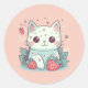 Cute kawaii cat with strawberries classic round sticker