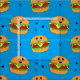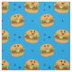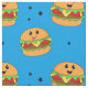 Cute Kawaii Cheeseburger Pattern on Blue Fabric