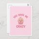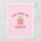 Cute Kawaii Crazy Muffin Cupcake Food Pun Love Quote Postcard with the lettering of 'You Bake Me Crazy' is a cute quirky, crazy, funny, punny greeting to your loved ones. Crazy silly face muffin with tongue out expression with pastel colour background will put a smile of your valentines, friends, families, relatives, girlfriends, boyfriends, spouses, or food pun lovers.