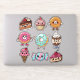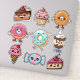 Adorable Kawaii food stickers. This sheet includes cute desserts such as chocolate cake, cheesecake, chocolate pudding parfait, candy, ice cream cone, donuts and a cupcake.
