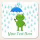 Cute Kawaii Frog and Rain Square Paper Coaster