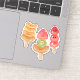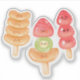 This whimsical design features three adorable, fruit-themed popsicles with happy, hand-drawn faces. The illustrations include stacks of tangerines, strawberries, and a mixed fruit popsicle with a kiwi slice center, all rendered in a charming watercolor style. This sweet and cheerful artwork is perfect for adding a fun, summery, and cute touch to your print-on-demand products.