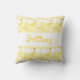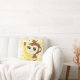 A very cute and kawaii monkey holding a banana, the background in yellow tones and banana pattern. seen here on a throw pillow with the option of adding your name