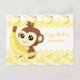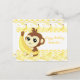 A very cute and kawaii monkey holding a banana, the background in yellow tones and banana pattern..on a post card for a birthday card