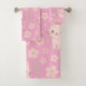 Cute Kawaii Pink Cats and Flowers Towel Set