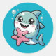 Cute Kawaii Shark & Starfish Classic Round Sticker