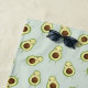 Adorable avocado patterned beach towel features an allover pattern of smiling and winking kawaii avocados in a cartoon style, on a pale green background. A cute and trendy design that's perfect for avocado lovers or kawaii fans!