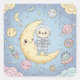 An enchanting and ultra-sweet illustration combining the theme of Outer Space with a soft Kawaii style. The design features a cute little character (like a bunny or cub) in an astronaut suit, floating among smiling planets, moons, and flying objects (including Saturn, a UFO, rockets, and even a space donut). The color palette is pastel, soft, and gentle (blue, pink, and light yellow). Perfect for children's room décor, bedding products, themed parties, and any product intended to spark imagination and sweet dreams.