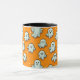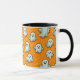 Mug in a bunch of cute, cartoon-style ghosts floating on a bright orange background. Each ghost has a different adorable facial expression, giving the pattern a fun and quirky vibe.