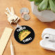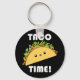 A cute keychain featuring a yummy taco with ground beef, lettuce, tomatoes, and cheese, smiling on a black background between the words "Taco Time!" in white Bahaus 93 font. A cute gift for taco lovers, Japanese pop art, and fans of humourous kawaii!