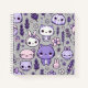 Grey background with cute purple Kawaii characters and lavender flowers on this square spiral notebook, where inside pages may be changed to suit your needs, as well as different colour spirals, etc.