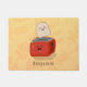 For a happy breakfast! Featuring a cute slice of toast jumping out of a red toaster in adorable cartoon style!