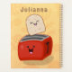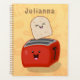 For a happy breakfast! Featuring a cute slice of toast jumping out of a red toaster in adorable cartoon style!