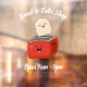 For a happy breakfast! Featuring a cute slice of toast jumping out of a red toaster in adorable cartoon style!