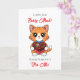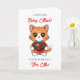 A sweet Valentine's Day card that is romantic and cute! The front of this card has an orange cat holding a heart filled box of chocolate covered strawberries with a cute cat and strawberry pun. The inside says Happy Valentine's Day!