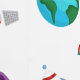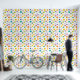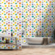 A cute watercolor planets pattern wallpaper featuring planets in fun kid colours in various positions on a clean white background. The perfect finish to any nursery or kids room.