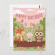 Cute Kids' Birthday Design with Fox, Bunny & Owl Postcard