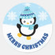 Cute Kids Blue Hat Penguin Merry Christmas Classic Round Sticker