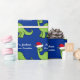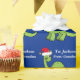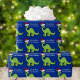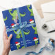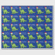 Awesome blue and green dinosaur Christmas wrapping paper. This apatosaurus looks very cute in a holiday red Santa hat with a little smile. I like prehistoric Christmas animals and presents that kids will love. Customise this gift wrap for your little boy.